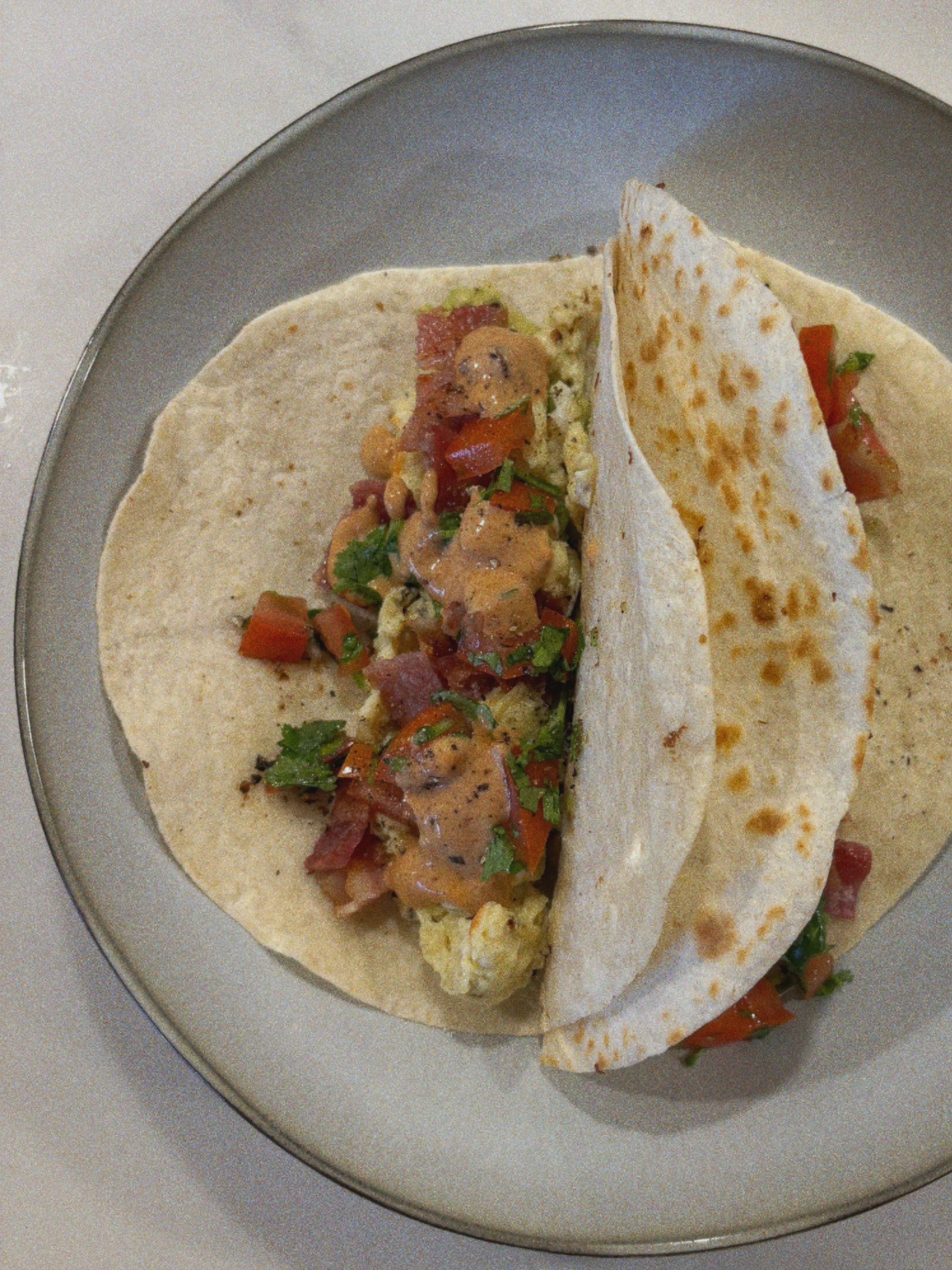 This morning I found some tortillas in the freezer and dregs of a chipotle paste leftover from taco night. Immediately breakfast tacos came to mind, knowing I had eggs in the pantry.